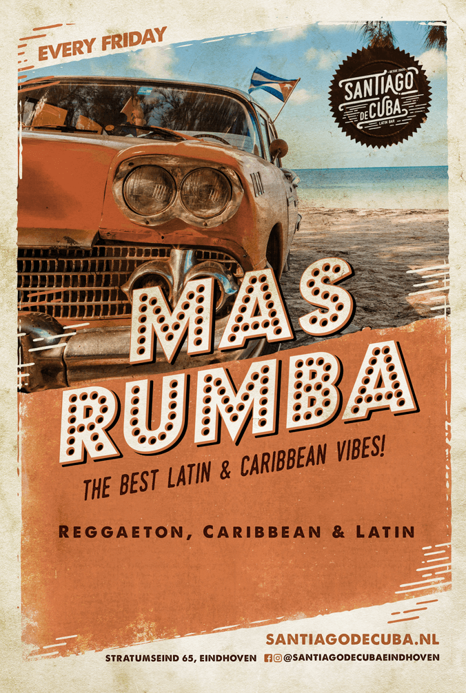 Houd je van Latin muziek & vibes met een beetje afwisseling? Op zaterdag draaien onze DJ’s een beetje van alles! Van Urban, Reggaeton, Salsa, Merengue en Clubmuziek! Mas Rumba voor iedereen!